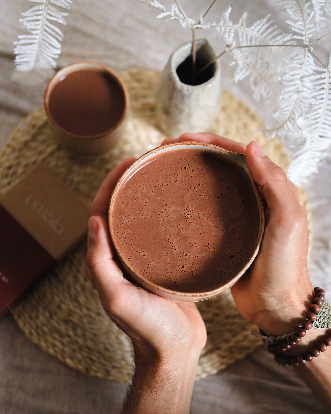 Pour your cacao blend into your favourite vessel. Take a mindful moment, use all your senses to experience the essence of the cacao and sip with intention.